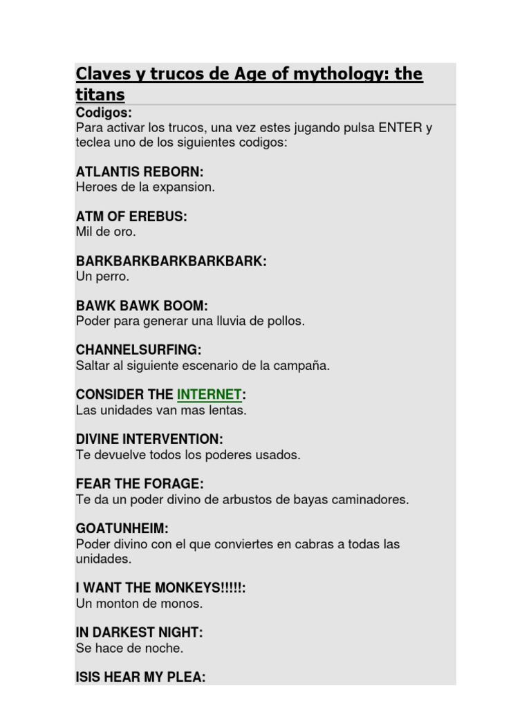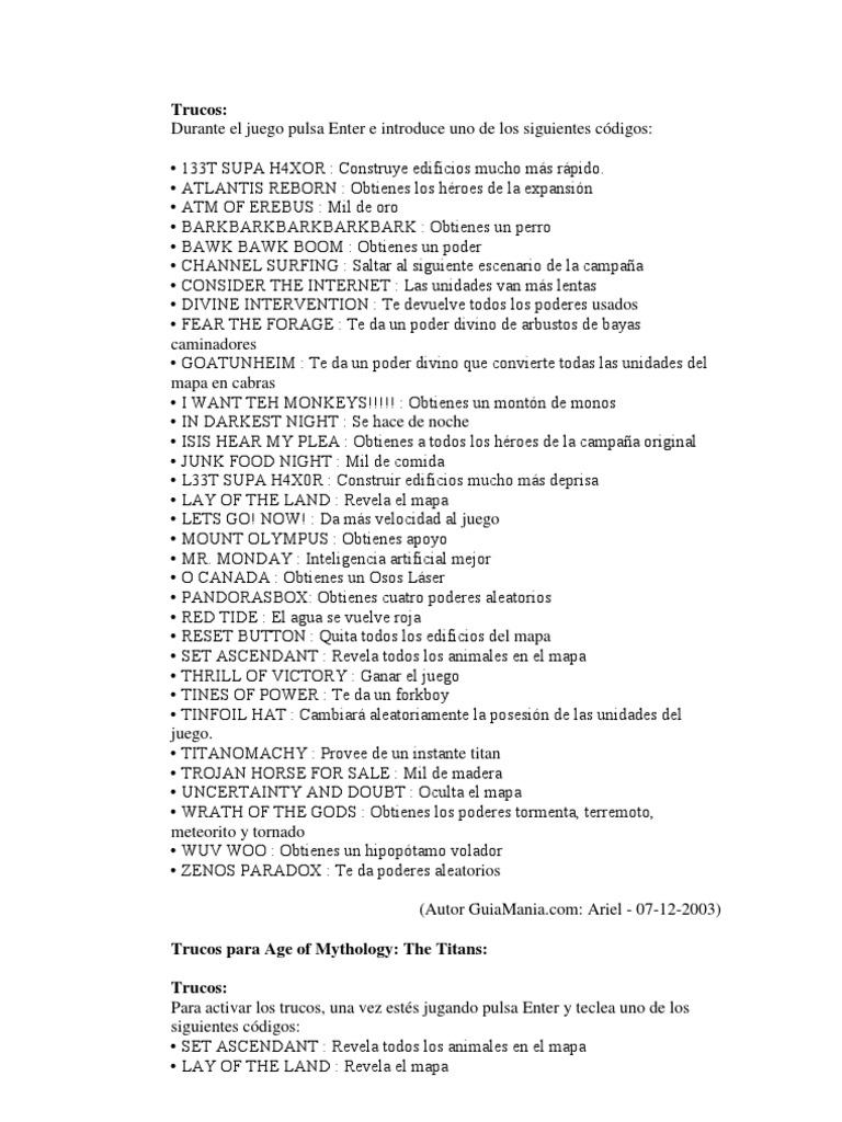Somos pioneros en trucos para videojuegos guas y mucho ms. 30 rivi Age of Mythology Codes. Saltar al siguiente escenario de la campaa.